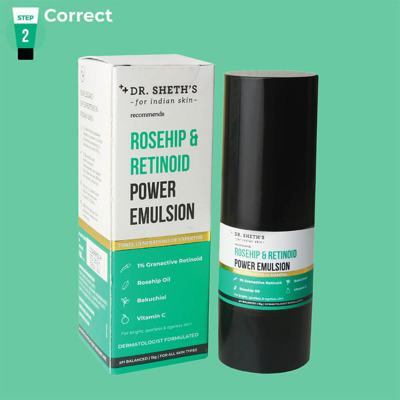 Our Rosehip and Retinol Power Emulsion harnesses the power of retinoids all while being gentle and specially formulated for sensitive Indian skin! Other retinols and retinoids on the market, if used without supervision, may inflame already irritated Indian skin.