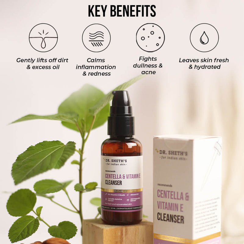 • Nourishing ingredients like Vitamin E & Almond Oil repair the skin barrier, while Centella Asiatica and Ashwagandha extract soothe skin. Get ready to say hello to refreshed skin with every use.