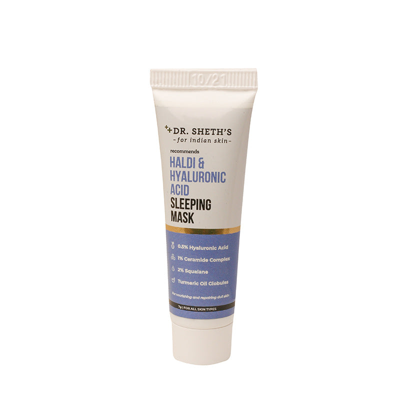 Step 1: Apply a thin layer of the Haldi & Hyaluronic Acid Sleeping Mask on your face over your night cream.