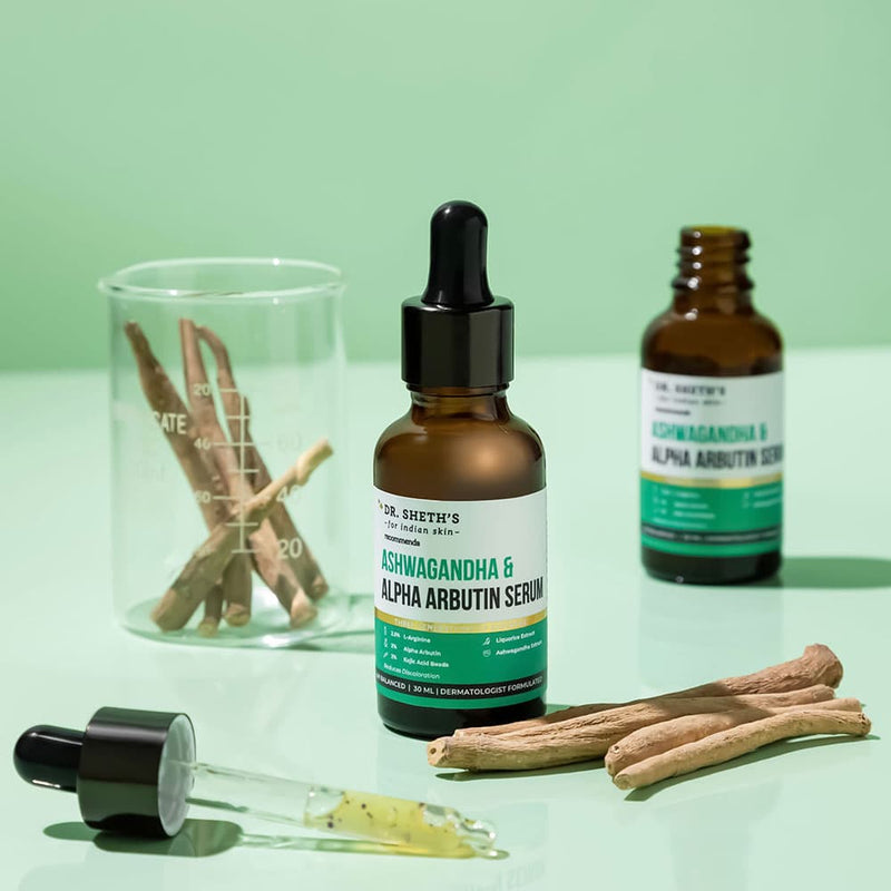 • In the Ashwagandha & Alpha arbutin serum, we use Agar to encapsulate the Kojic Acid beads. Using Agar is the most eco-friendly option which allows for maximum efficacy. However, under certain environmental conditions, the agar can cause a slight yellowing of the formulation. This will not affect the safety or efficacy of the product. While other encapsulation methods exist, they are not as eco-friendly as agar. If you feel that your product is compromised, please feel free to reach out to us at support@drsheths.com and our team will help resolve your situation.