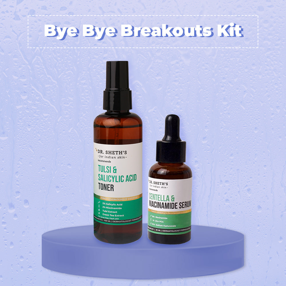 Why do breakouts always magically appear before a big occasion? If ill-timed acne is your skin’s biggest enemy, then you need to try our Bye-bye Breakouts Kit. Pollution, weather and diet are some of the most common reasons why Indian skin is very susceptible to acne, which is why we have curated this kit which includes acne zapping super ingredients like Tulsi, Salicylic Acid, Niacinamide and calming Centella, to help you on your journey to clearer skin.
