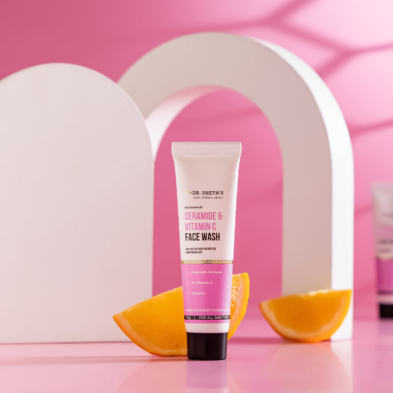 C for spotless and moisturized skin with Dr. Sheth’s Ceramide & Vitamin C Face Wash. A one-of-a-kind, non-drying & fragrance-free formula, it is infused with brightening antioxidants such as Vitamin C, which reduces dark spots & pigmentation, while barrier-strengthening Ceramide Complex repairs & rebuilds the skin’s protective barrier. Perfect for daily use, it has a creamy consistency that transforms into a rich & hydrating lather to effectively liberate dirt, sebum & other impurities without disrupting skin’s moisture barrier for visibly brighter, hydrated & glowing skin.